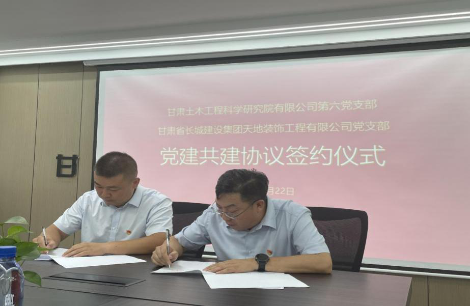 為深入學(xué)習(xí)貫徹黨的二十屆三中全會(huì)精神,加強(qiáng)基層黨建工作,2024年8月22日,公司第六黨支部與甘肅省長(zhǎng)城建設(shè)集團(tuán)天地裝飾工程有限公司黨支部以甘肅省機(jī)關(guān)事務(wù)管理局房屋統(tǒng)建管理中心所屬“原重點(diǎn)工程公安局辦公樓維修改造項(xiàng)目”為載體,在長(zhǎng)城建設(shè)集團(tuán)開展了“黨建共建”活動(dòng),雙方開展座談交流并舉行了黨建共建協(xié)議簽約儀式。